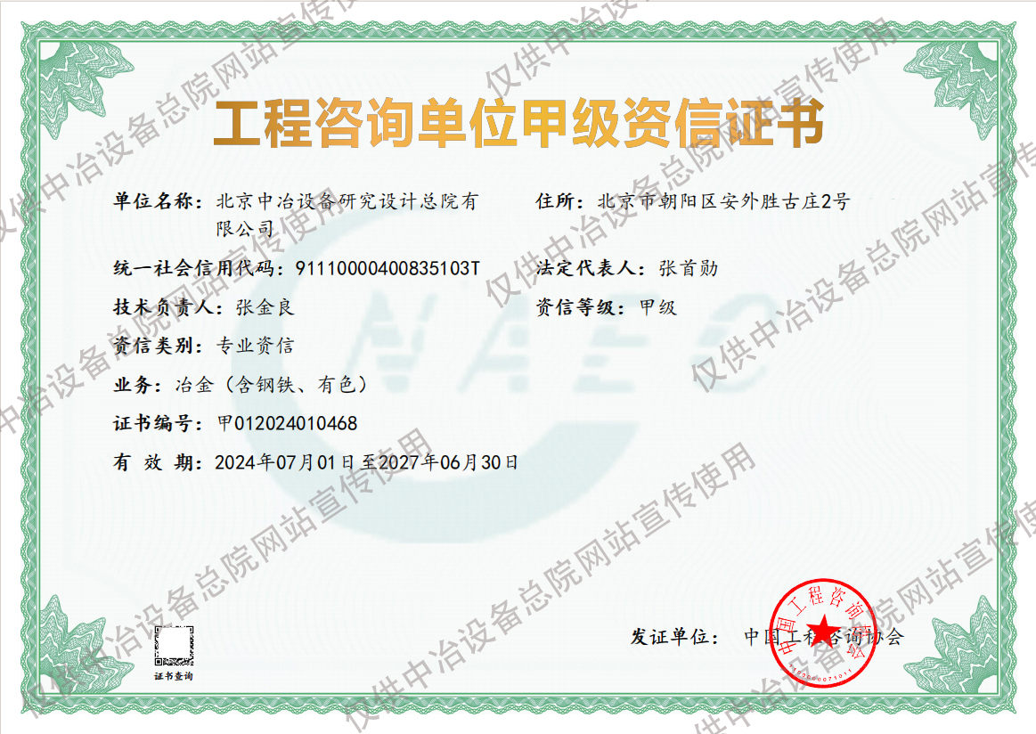 工程咨詢單位甲級專業(yè)資信證書