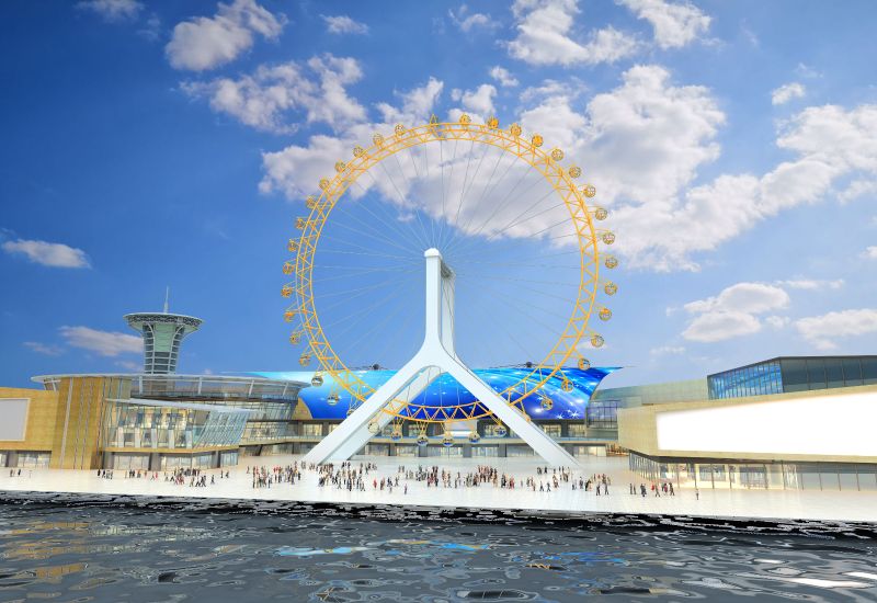 項(xiàng)目亮點(diǎn):該設(shè)備是國內(nèi)第三臺108米人字支撐全拉索結(jié)構(gòu)高端定制摩天輪。